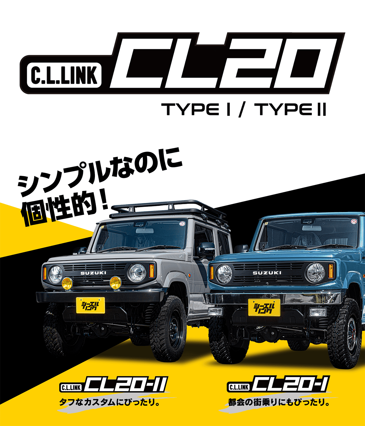 A. シーエルリンクオリジナルJB64サスペンションキット(1インチ・2インチ)が装着可能です。CL20-1型では街乗り中心のライトユーザーを中心に純正の乗り心地の良さと運転の楽しさを感じていただくために全体のバランスと性能を考え2インチをオススメしています。
