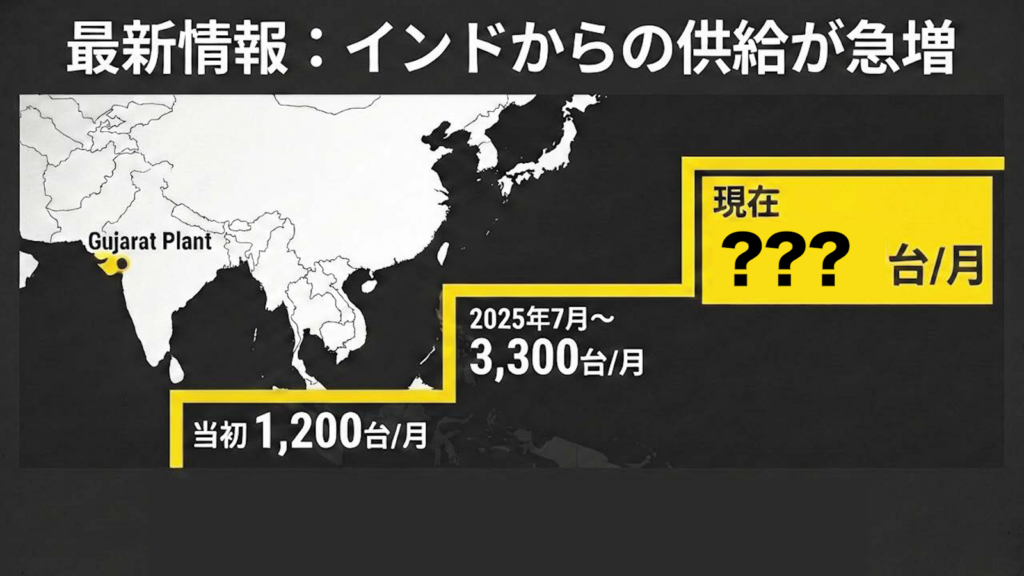 スズキとしては、昨年わずか4日間で受注ストップとなった伝説の「1型(約5万台分)」を、2型発売までにすべて吐き出す(納車しきる)必要があります。そのため、インド工場からの船便を増やし、現在猛烈な勢いで国内納車を進めているのではないかと思われます。