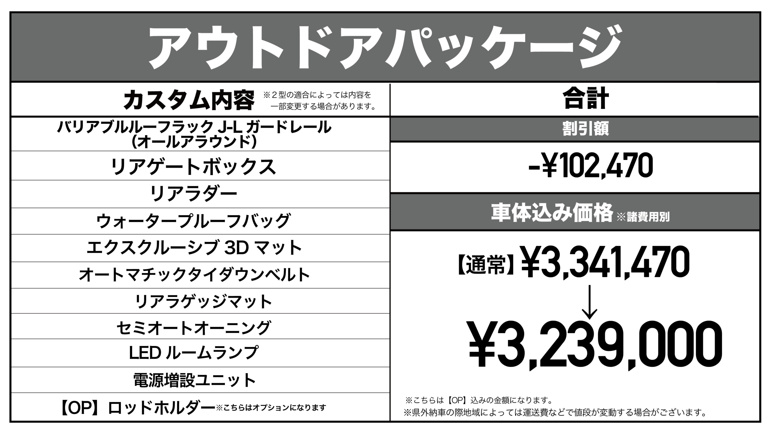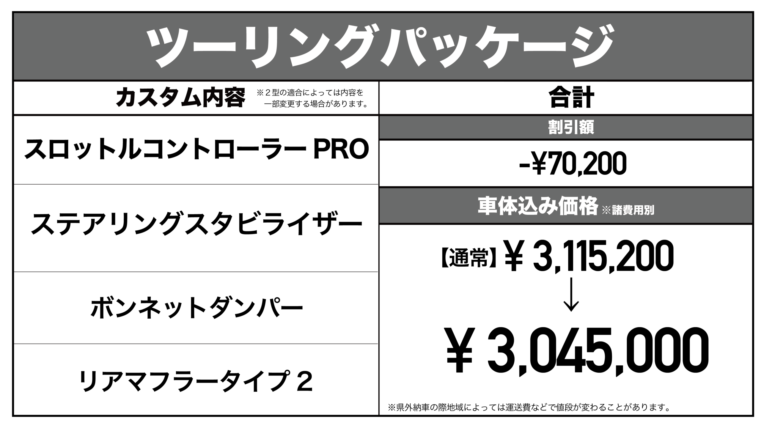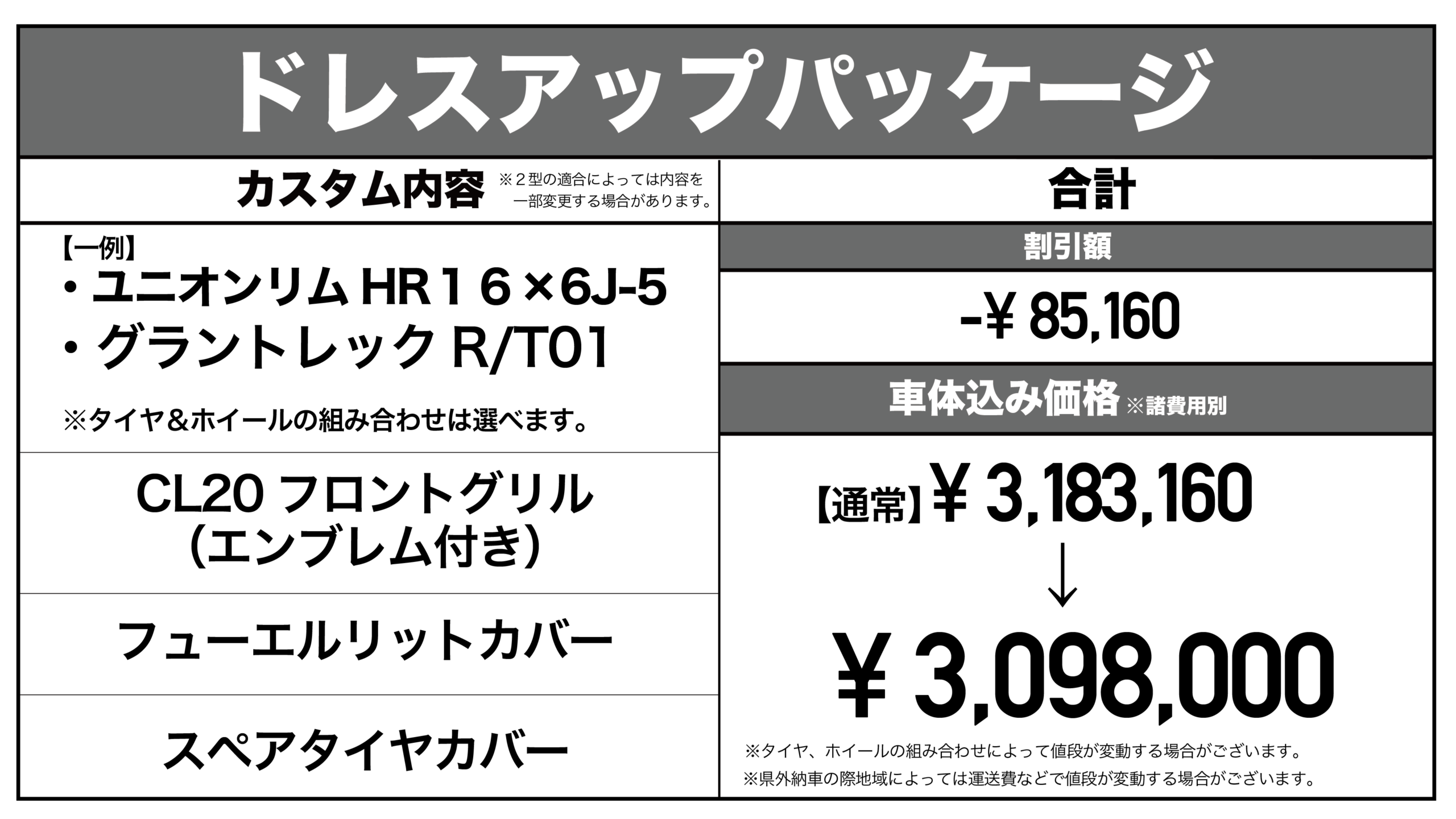 3種類のパッケージを組み合わせることもでき好みのカスタムした状態で納車することもできます。
